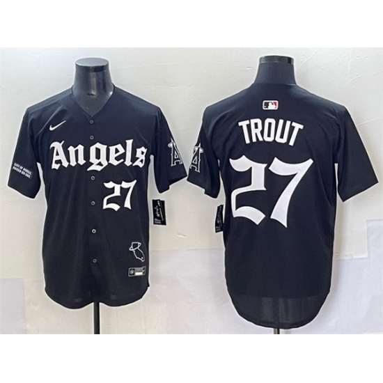 Home>MLB>Los Angeles Angels>Men>Men Los Angeles Angels 27 Mike Trout Black 27Gothic Halo Edition 27 Vapor Limited Stitched Baseball Jersey