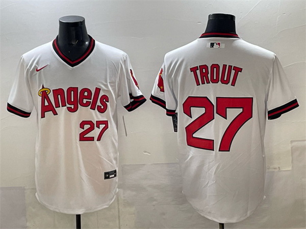 Men Los Angeles Angels 27 Mike Trout White Cool Base Stitched Baseball Jersey