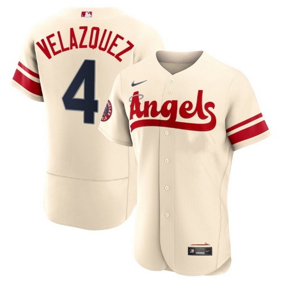 Home>MLB>Los Angeles Angels>Men>Men Los Angeles Angels 4 Andrew Velazquez 2022 Cream City Connect Flex Base Stitched Jerseyy