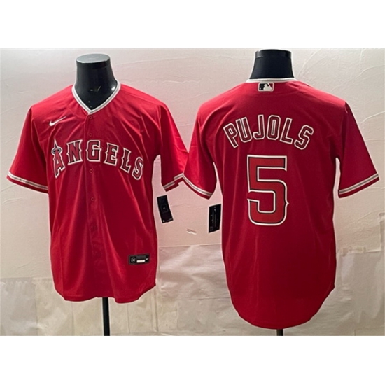 Home>MLB>Los Angeles Angels>Men>Men Los Angeles Angels 5 Albert Pujols Red Stitched Baseball Jersey