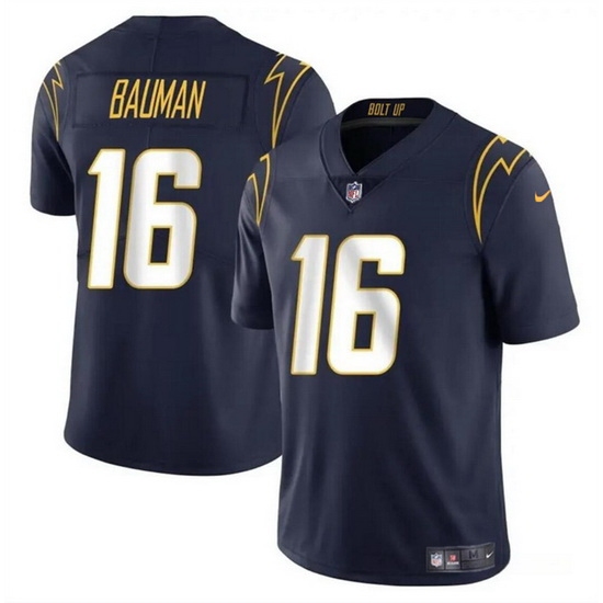Home>NFL>Los Angeles Chargers>Men>Men Los Angeles Chargers 16 Casey Bauman Navy 2024 Vapor Limited Stitched Football Jersey