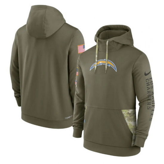 Home>Hoodie T Shirt>NFL Hoodie>Los Angeles Charger>Men>Men Los Angeles Chargers 2022 Olive Salute To Service Therma Performance Pullover Hoodie