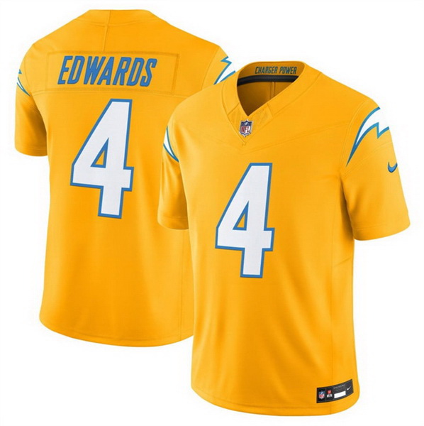 Home>NFL>Los Angeles Chargers>Men>Men Los Angeles Chargers 4 Taylor Heinicke Gold 2025 F U S E Alternate Vapor Limited Stitched Football Jersey