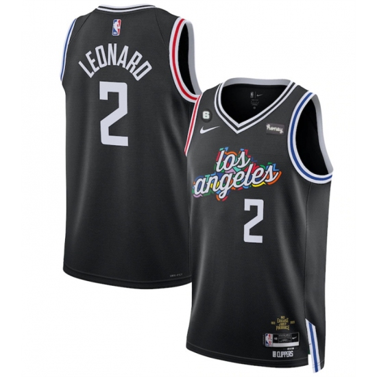 Home>NBA>Los Angeles Clippers>Men>Men Los Angeles Clippers 2 Kawhi Leonard Black 2022 23 City Edition With NO 6 Patch Stitched Jersey