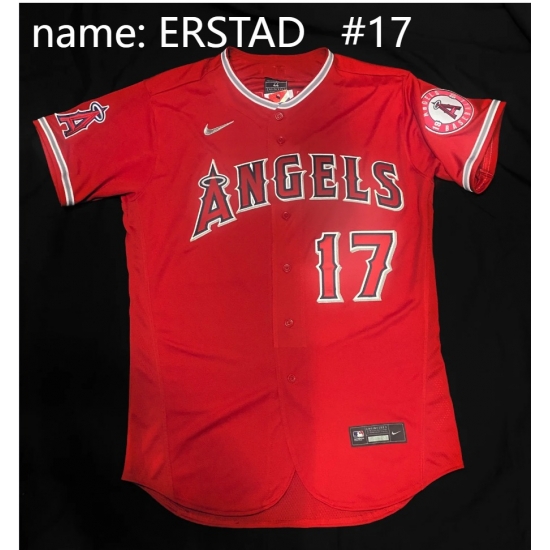 Home>MLB>Los Angeles Angels>Men>Men Los Angeles DARIN ERSTAD #17 Red Stitched Cool Base MLB Jersey