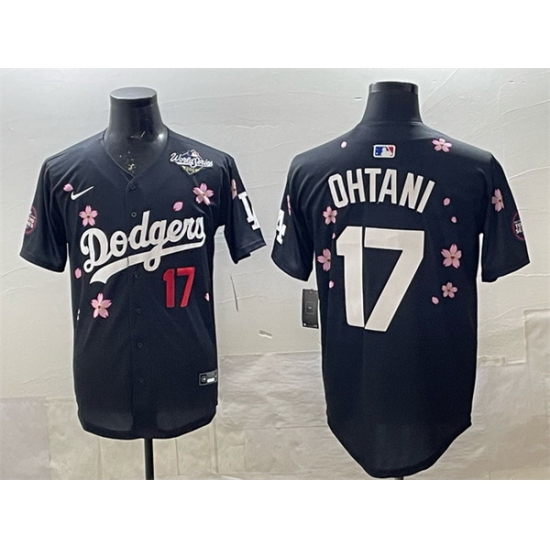 Men Los Angeles Dodgers 17 Shohei Ohtani Black 2025 World Series Patch Tokyo Series Limited Stitched Baseball Jersey