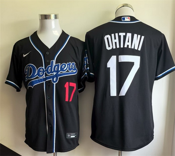 Home>MLB>Los Angeles Dodgers>Men>Men Los Angeles Dodgers 17 Shohei Ohtani Black Cool Base Stitched Baseball Jersey