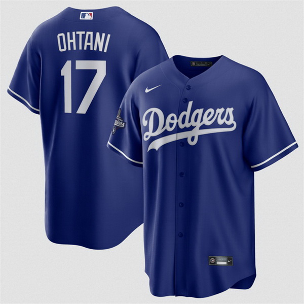 Men Los Angeles Dodgers 17 Shohei Ohtani Blue 2025 World Series Champions Patch Cool Base Stitched Baseball Jersey