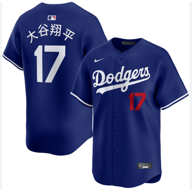 Men Los Angeles Dodgers 17 Shohei Ohtani Japanese Blue Home Limited Stitched Baseball Jersey