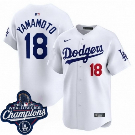 Men Los Angeles Dodgers 18 Yoshinobu Yamamoto Cool Base 2025 World Champions Stitched Baseball Jersey White