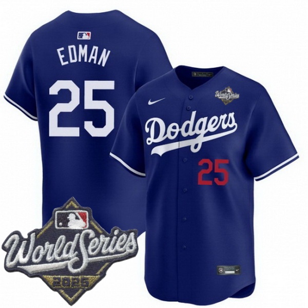 Men Los Angeles Dodgers 25 Tommy Edman 2025 World Series Cool Base Stitched Baseball Jersey Blue