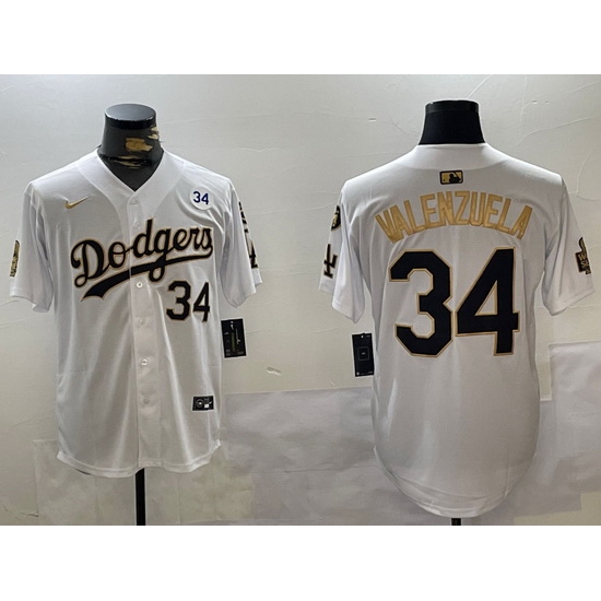 Men Los Angeles Dodgers 34 Toro Valenzuela White Gold 2024 World Series With Fernando Memorial Patch Limited Stitched Baseball Jersey 1