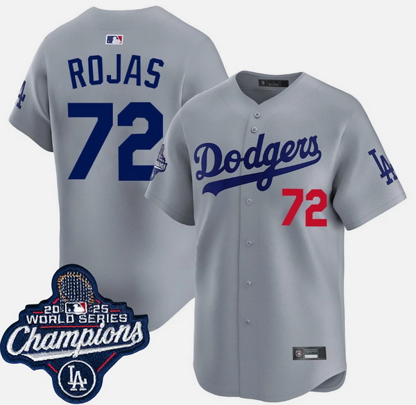 Home>MLB>Los Angeles Dodgers>Men>Men Los Angeles Dodgers 72 Miguel Rojas Grey 2025 World Series Champions Patch Limited Stitched Baseball Jersey II