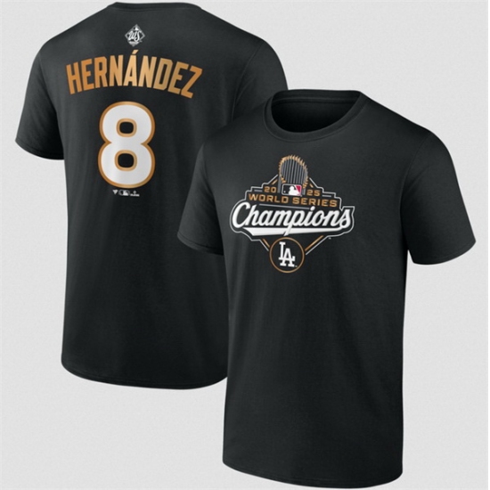 Home>MLB>MLB T-Shirt>Los Angeles Dodgers>Men Los Angeles Dodgers 8 Enrique Hernandez Black 2025 World Series Champions Name 26 Number T Shirt