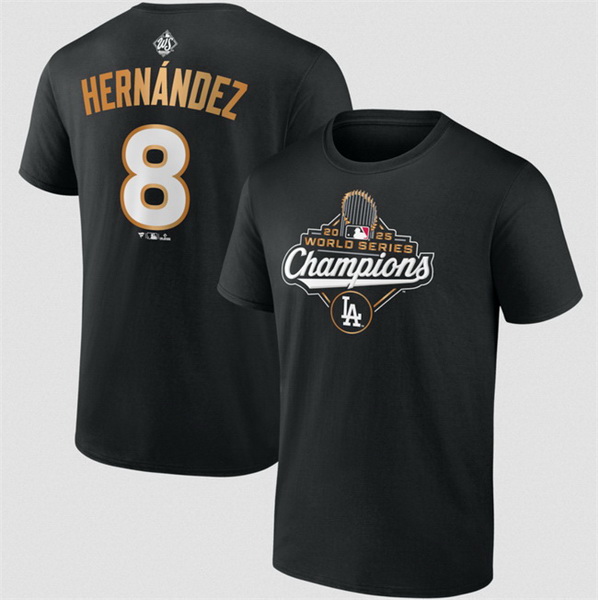 Men Los Angeles Dodgers 8 Enrique Hernandez Black 2025 World Series Champions Name 26 Number T Shirt