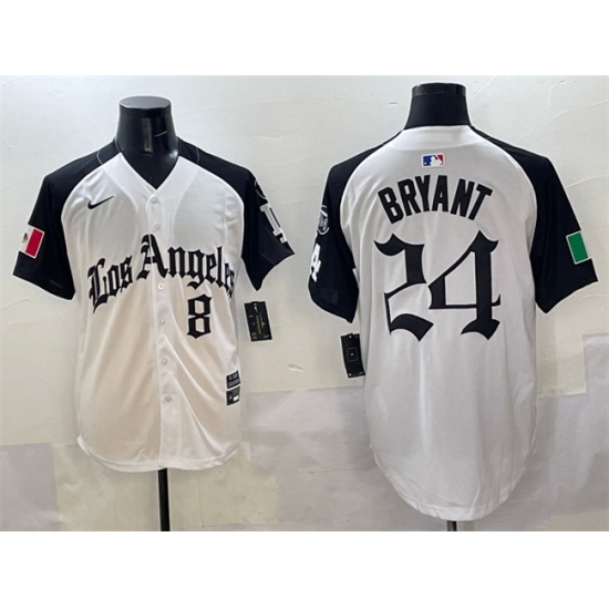 Home>MLB>Los Angeles Dodgers>Men>Men Los Angeles Dodgers Front 8 Back 24 Kobe Bryant White Black Mexico 2025 LA Gothic Style With Fernando Patch Vapor Premier Limited Stitched Baseball Jer