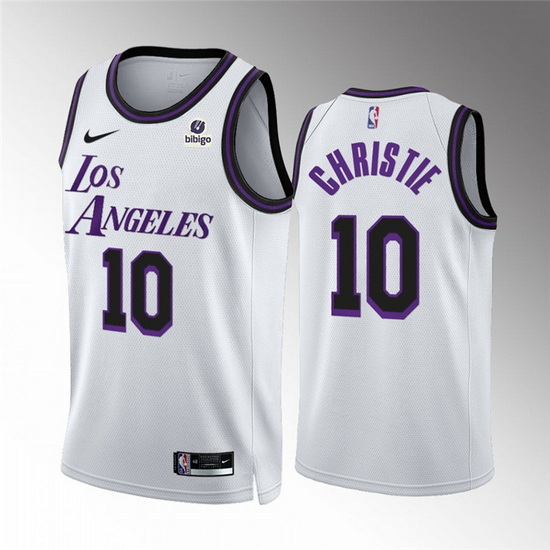 Home>NBA>Los Angeles Lakers>Men>Men Los Angeles Lakers 10 Max Christie White City Edition Stitched Basketball Jersey