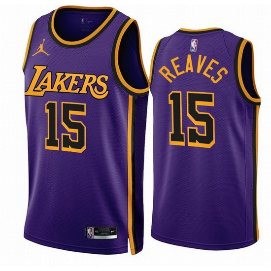 Home>NBA>Los Angeles Lakers>Men>Men Los Angeles Lakers 15 Austin Reaves Purple 2022 23 Statement Edition With NO 6 Patch Stitched Basketball Jersey