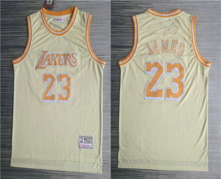 Home>NBA>Los Angeles Lakers>Men>Men Los Angeles Lakers 23 LeBron James Gold Hardwood Classics Soul Throwback Limited Jersey
