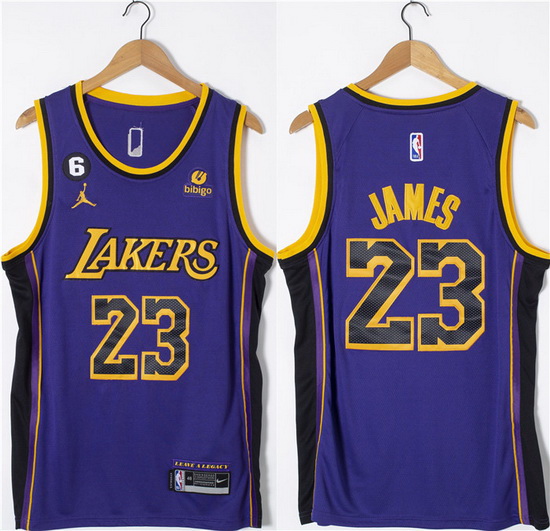 Men Los Angeles Lakers 23 LeBron James Purple With NO 6 Patch Stitched Basketball Jersey