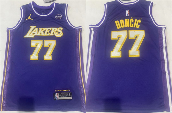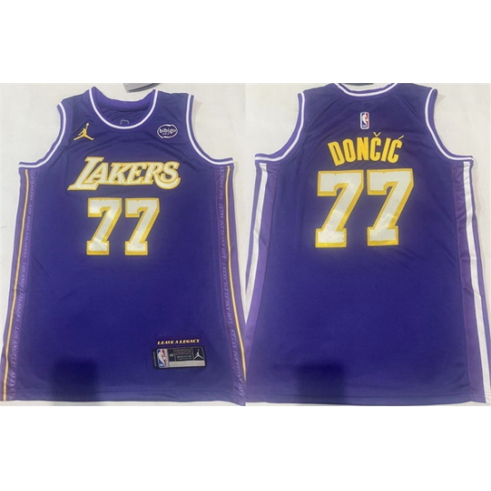 Men Los Angeles Lakers 77 Luka Doncic Puple Stitched Basketball Jersey