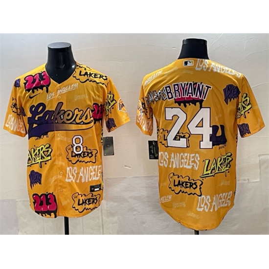 Home>NBA>Los Angeles Lakers>Men>Men Los Angeles Lakers Front 8 Back 24 Kobe Bryant Yellow Limited Stitched Baseball Jersey