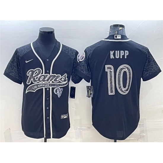 Men Los Angeles Rams 10 Cooper Kupp Black Reflective With Patch Cool Base Stitched Baseball Jersey