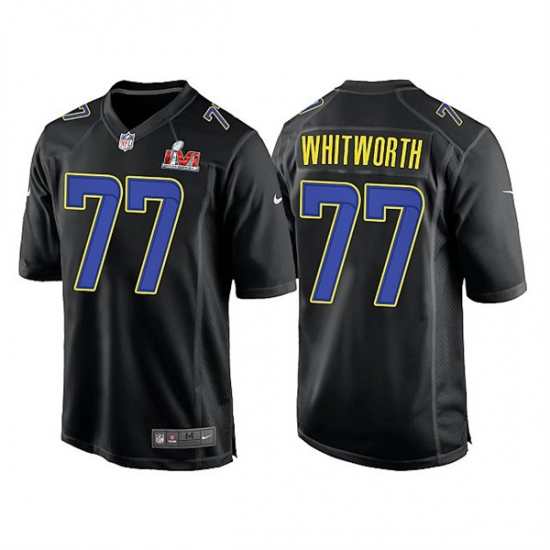 Men Los Angeles Rams 77 Andrew Whitworth 2022 Black Super Bowl LVI Game Stitched Jersey