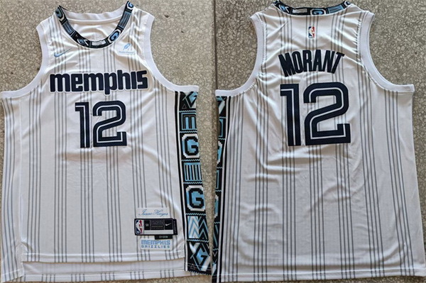 Home>NBA>Memphis Grizzlies>Men>Men Memphis Grizzlies 12 Ja Morant White 2025 26 City Edition Edition Stitched Basketball Jersey
