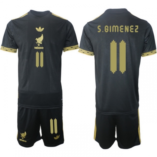 Home>Soccer>Soccer Country Men>Mexico>Men Mexico 2025 Soccer Jerseys BlackGold #11 S.BIMENEZ