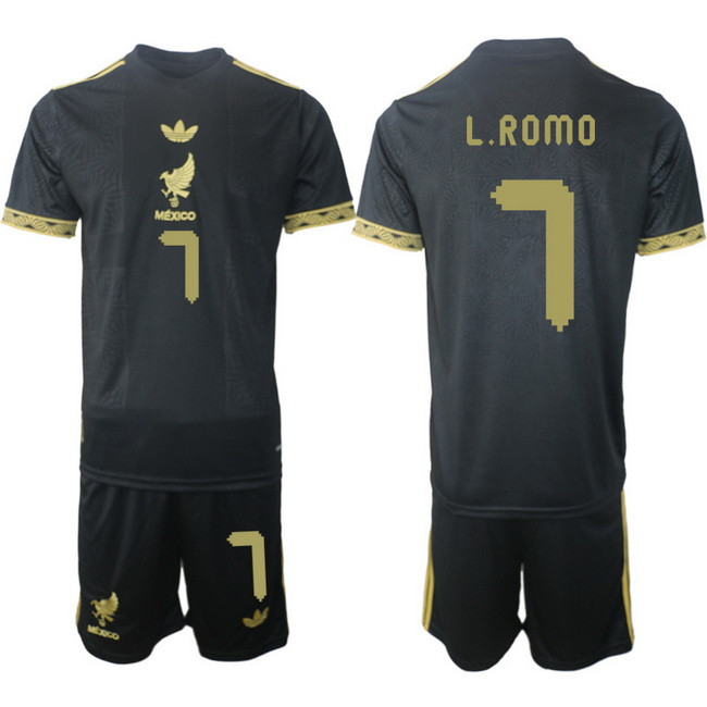 Men Mexico 2025 Soccer Jerseys BlackGold #7 L.ROMO