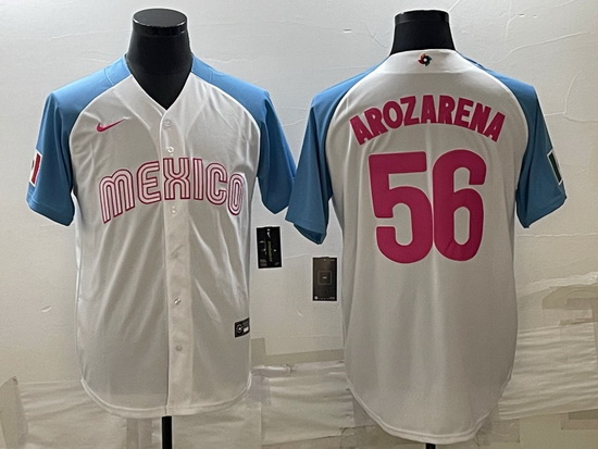 Men Mexico Baseball 56 Randy Arozarena 2023 White Blue World Baseball Classic Stitched JerseyS 2