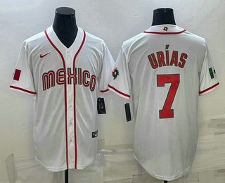 Men Mexico Baseball #7 Julio Urias 2023 White World Baseball Classic Stitched Jersey 5