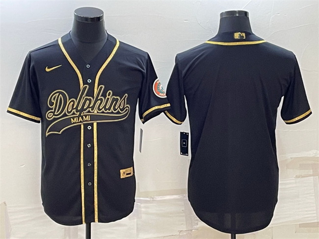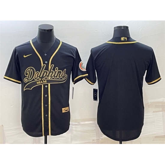 Men Miami Dolphins Blank Black Gold With Patch Cool Base Stitched Baseball Jersey