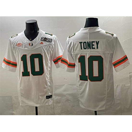 Men Miami Hurricanes 10 Malachi Toney White F U S E 2026 26 Florida Patch Stitched Football Jersey
