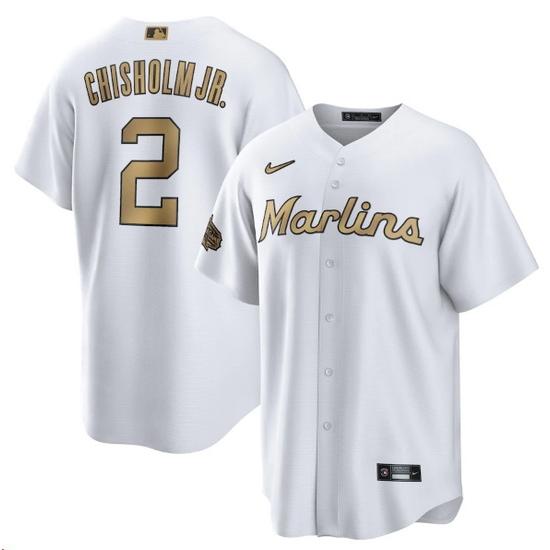Men Miami Marlins 2 Jazz Chisholm Jr 2022 All Star White Cool Base Stitched Baseball Jersey