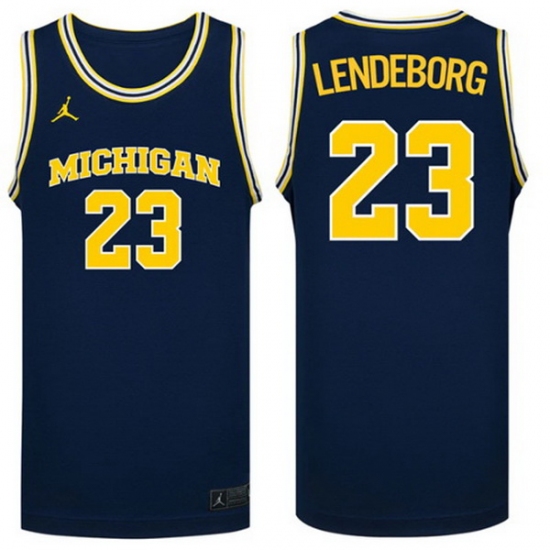 Home>NCAA>Michigan Wolverines>Men Michigan Wolverines Yaxel Lendeborg #23 Navy NCAA Basketball Jersey