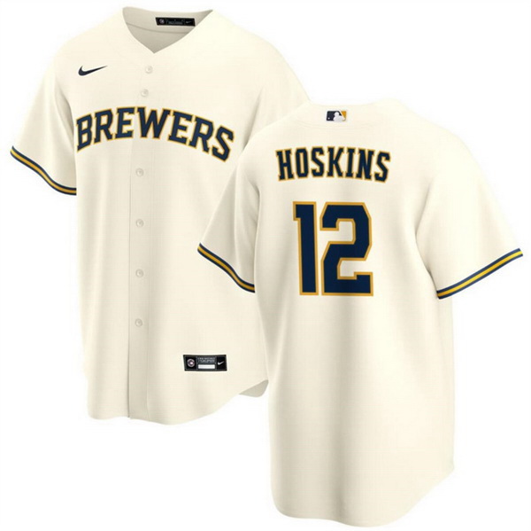 Home>MLB>Milwaukee Brewers>Men>Men Milwaukee Brewers 12 Rhys Hoskins Cream Cool Base Stitched Baseball Jersey