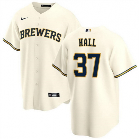 Home>MLB>Milwaukee Brewers>Men>Men Milwaukee Brewers 37 D L Hall Cream Cool Base Stitched Jersey