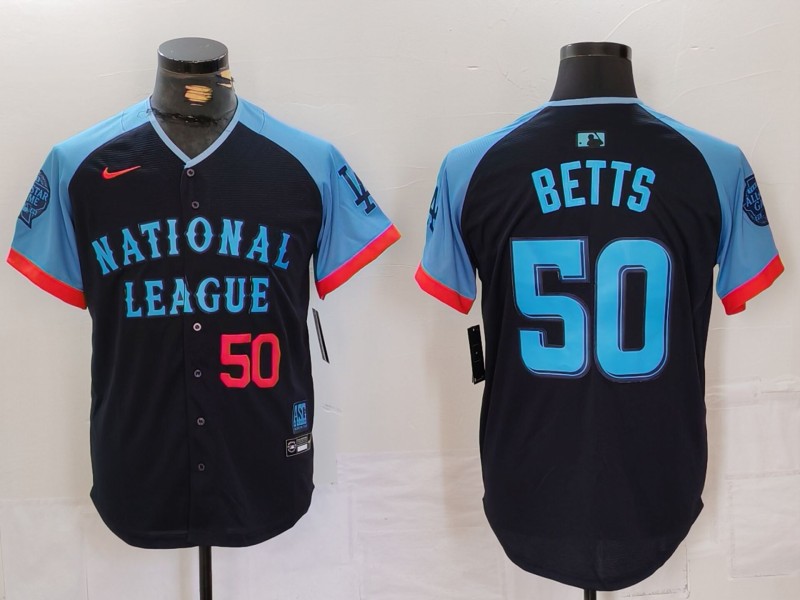 Men National League 50 Mookie Betts Navy 2024 All Star Limited Stitched Baseball Jersey