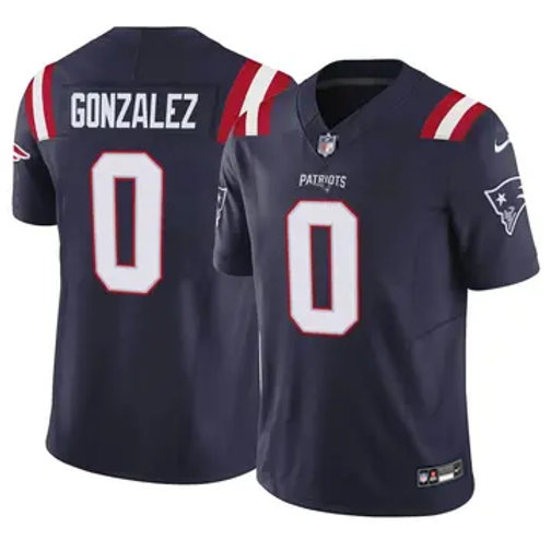 Home>NFL>New England Patriots>Men>Men New England Patriots 0 Christian Gonzalez Blue Stitched Vapor Limited Jersey