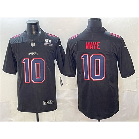 Men New England Patriots 10 Drake Maye Black Fashion With 6x Super Bowl Champions Patch Vapor Untouchable Limited Stitched Football Jersey