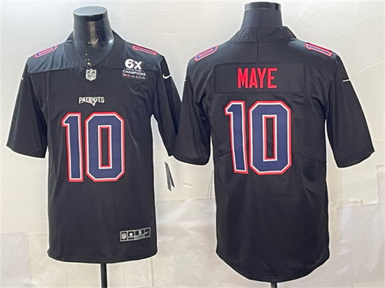 Home>NFL>2025 2026 Super Bowl LX>New England Patriots>Men New England Patriots 10 Drake Maye Black Fashion With 6x Super Bowl Champions Patch Vapor Untouchable Limited Stitched Football Jersey