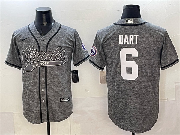 Home>NFL>New York Giants>Men>Men New York Giants 6 Jaxson Dart Gray With Patch Cool Base Stitched Baseball Jersey