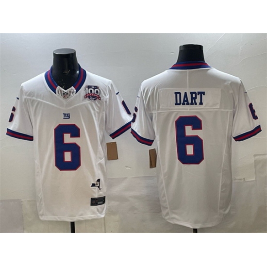 Men New York Giants 6 Jaxson Dart White 2025 Draft F U S E 100th Season 26 State Patch Vapor Limited Stitched Football Jersey