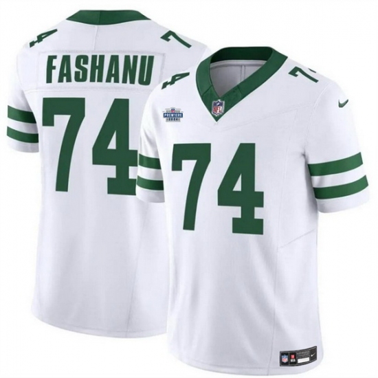 Men New York Jets 74 Olu Fashanu White 2024 F U S E With Draft Patch Vapor Limited Stitched Jersey