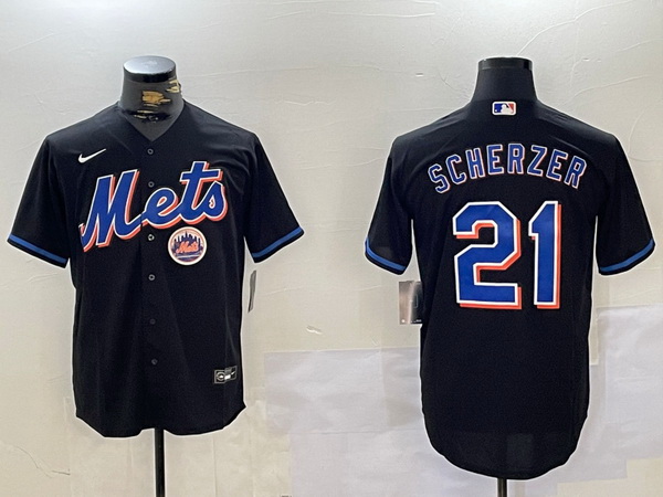 Men New York Mets 21 Max Scherzer Black Cool Base Stitched Baseball Jersey 1