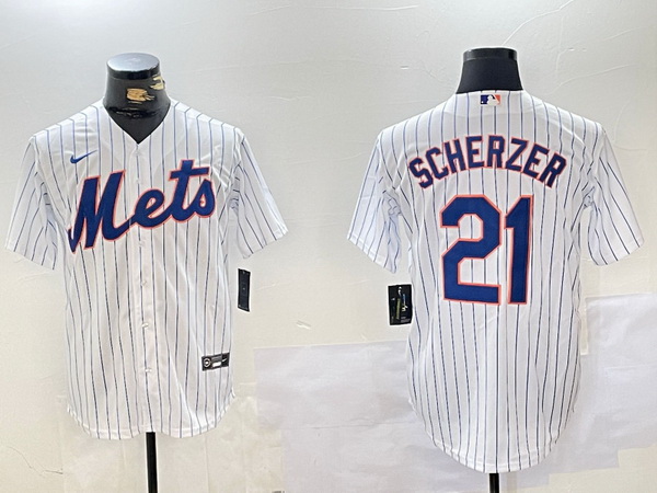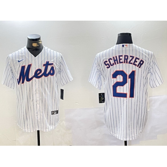 Men New York Mets 21 Max Scherzer White Cool Base Stitched Baseball Jersey 3