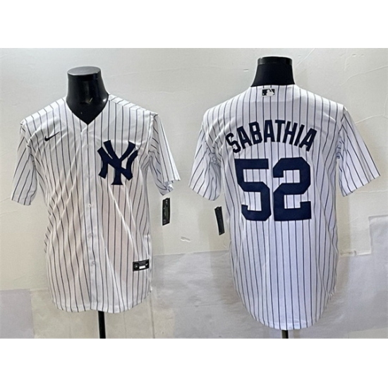 Men New York Yankees 52 C C Sabathia White Cool Base Stitched Jersey