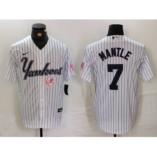 Men New York Yankees 7 Mickey Mantle White Cool Base Stitched Baseball Jersey 5